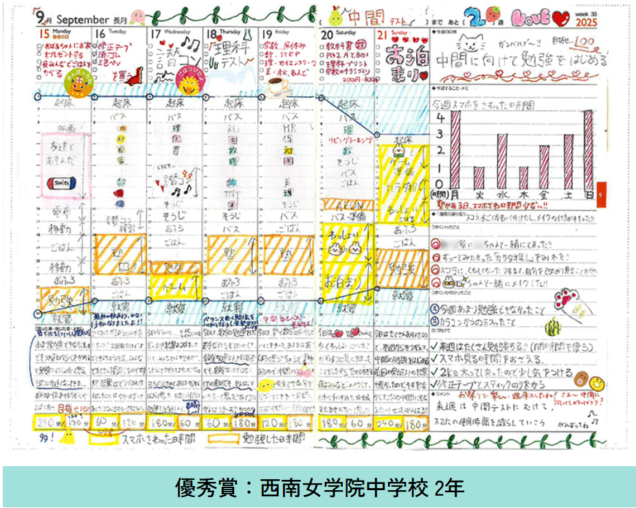 その手帳部門に、本校の中学2年生の小田さんが選ばれました!!