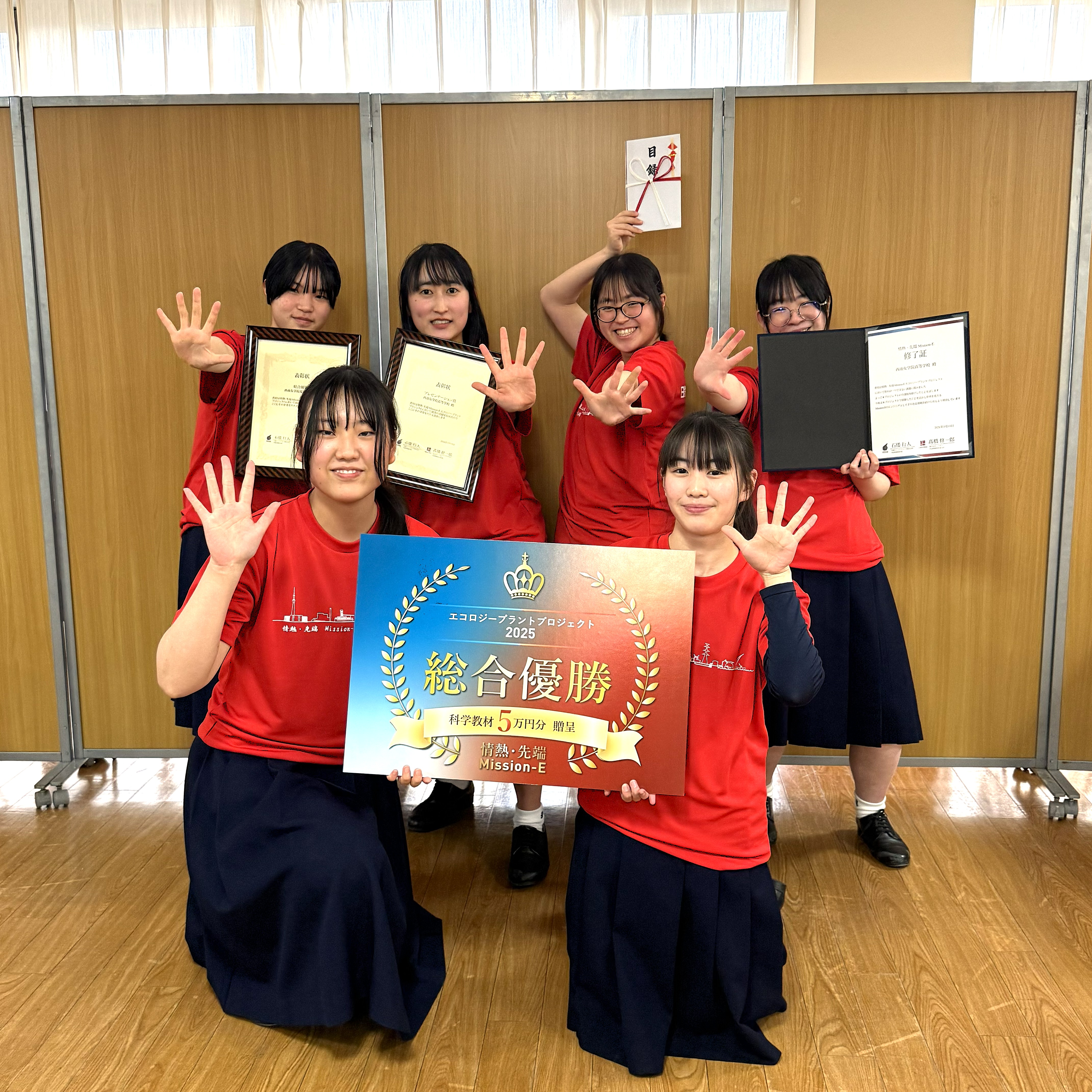 このたび、本校生徒チームがエネルギー研究コンテスト最終大会に出場し、見事総合優勝ならびにプレゼンテーション賞を受賞しました。